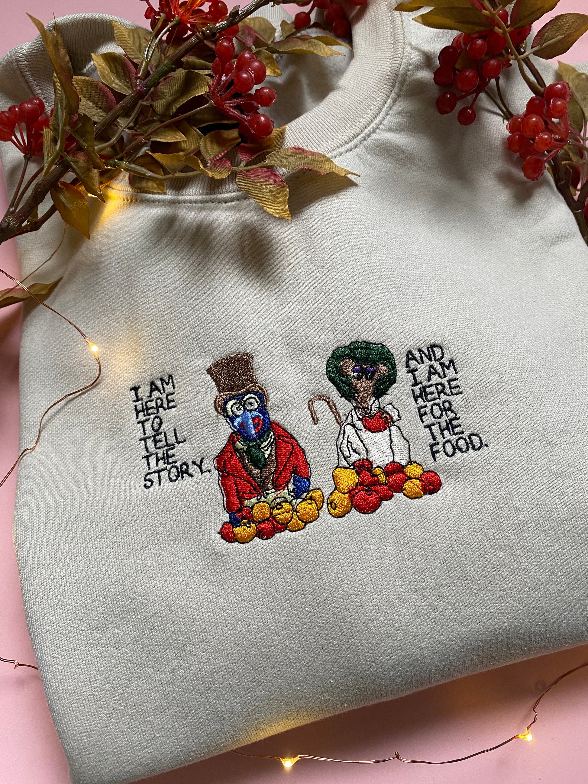 Here for the story and the food Embroidered Sweatshirt